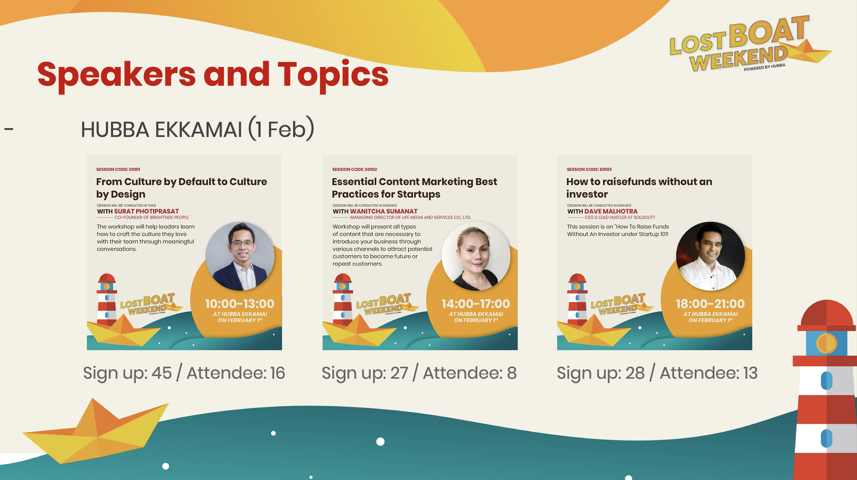 Lost Boat is starting from HUBBA believes that ‘Sailing is like a running business‘ that requires experience, knowledge and expertise. Lacking experience may cause your business to fail like a lost boat. So we’re hosted this event to be a startup business compass that provide guidance into the ocean from startups to startups.