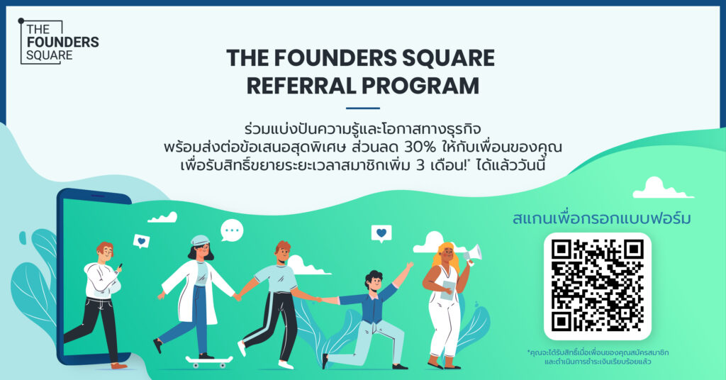 The Founder Square is an online community for Thai SMEs created during the COVID-19 pandemic. It is designed to support entrepreneurs who wish to strengthen their existing businesses or create new business models. The platform serves as a centralized hub that aggregates knowledge, business opportunities, and a supportive community for its members.